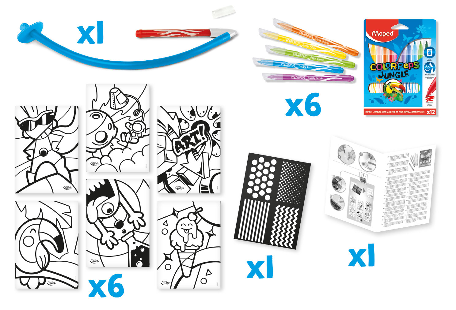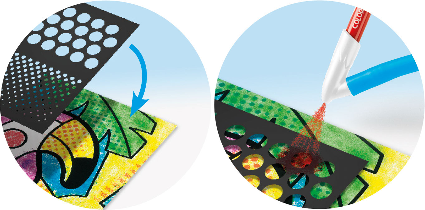 Blowpen Art Pop'Art - Kreative Aktivität mit Airbrush-Filzstiften und Schablonen.