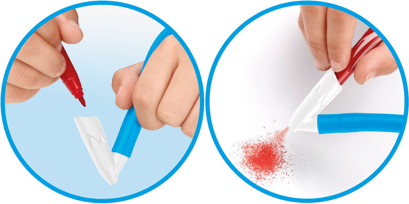 Mit der neuen Puste-Stift-Technik der BLOW PENS von Maped CREATIV wird jeder Filzstift zum Pustestift. Einfach einen beliebigen Filzstift in die Puste-Vorrichtung einstecken und los pusten. Schon entsteht auf dem Papier ein tolles, gesprenkeltes Farbergebnis. In dem Set sind bereits die Filzstifte COLOR’PEPS JUNGLE von Maped enthalten. Und falls diese Mal leer sein sollten, braucht man lediglich eine neue Packung der Filzstifte COLOR’PEPS JUNGLE und schon kann der Puste-Spaß wieder von vorn beginnen. Desweiteren sind Spühschablonen in dem Set POP ART enthalten, um verschiedenen geometrische Formen in das Bild zu sprühen. Die Puste-Stifte sind zur Gestaltung von verschiedenen Bastel-Projekten geeignet und können auf allen Oberflächen, auf denen man auch mit den Fasermalern malen kann, benutzt werden. Die Kreativität der Kinder wird damit besonders gefördert.