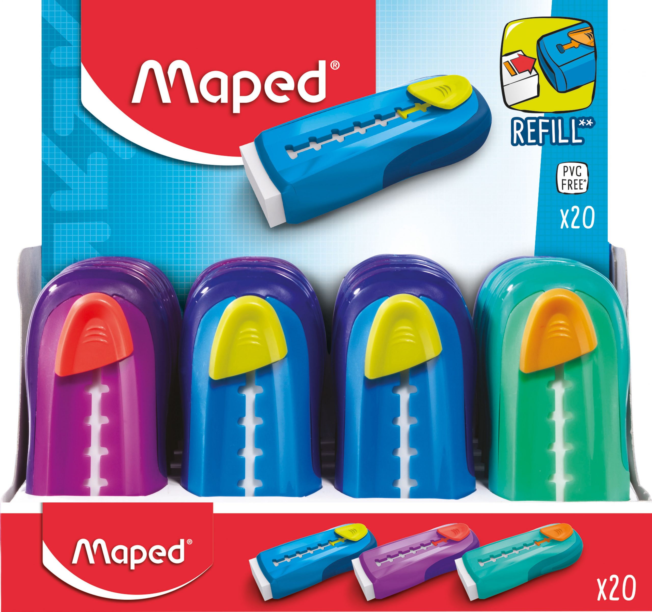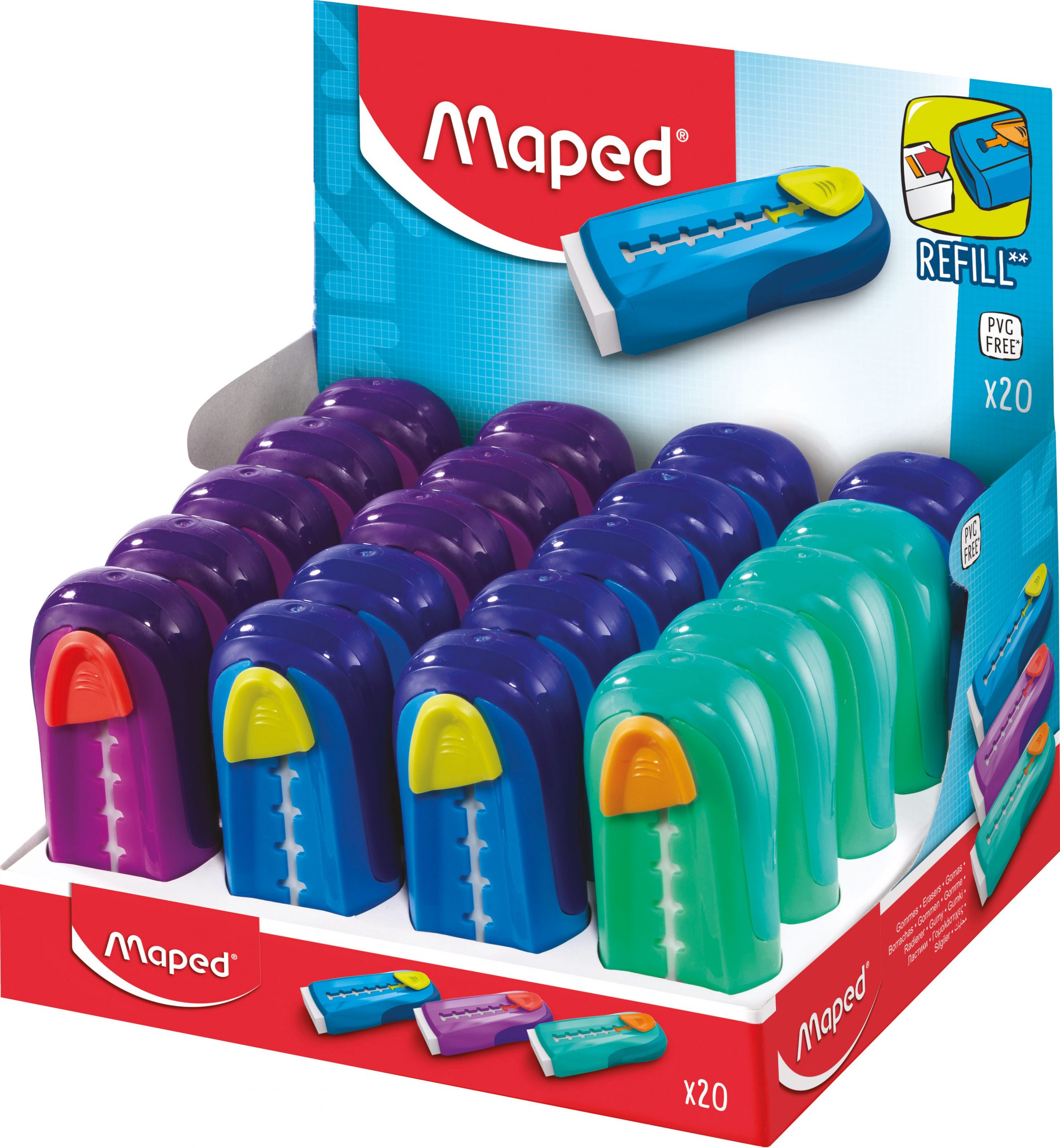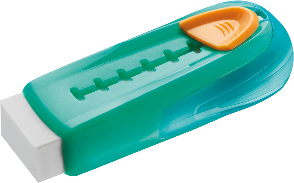 Der Radierer GOM-STICK von dem französischen Schulprodukte-Hersteller Maped schaut in den trendigen Farben besonders ansprechend aus. Der weiche und effiziente Radierer ist durch den Plastik-Schuber vor dem Schmutz beschützt und lässt sich auch noch damit deutlich präziser anwenden. Zum Nachfüllen eignen sich alle klassischen, rechteckigen Radierer in den Maßen 21,8 x 12 x 61 mm